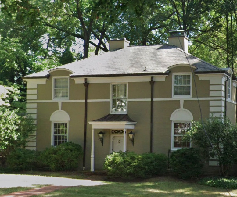- District NRHP nomination: “Colonial Revival. Two story; hip roof; brick; twelve-over-one windows; hip-roof entry porch with roof balustrade; paired, Tuscan columns; side porch with roof balustrade; modillions; solider course watertable.”