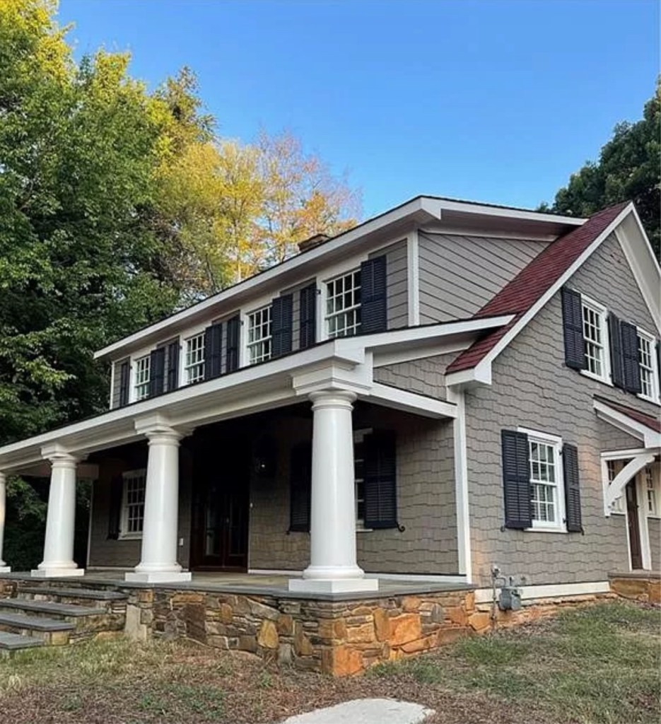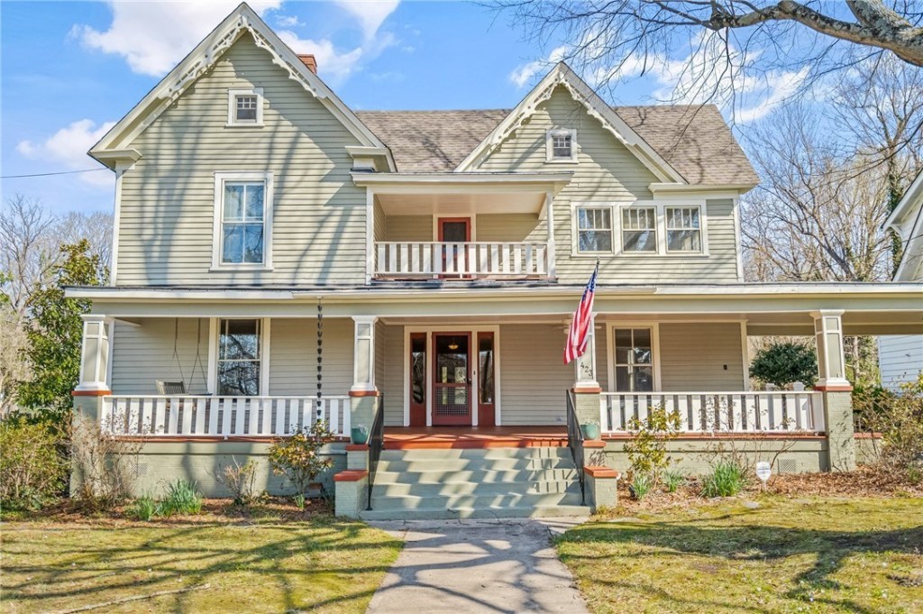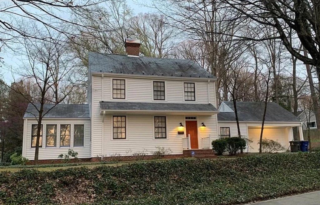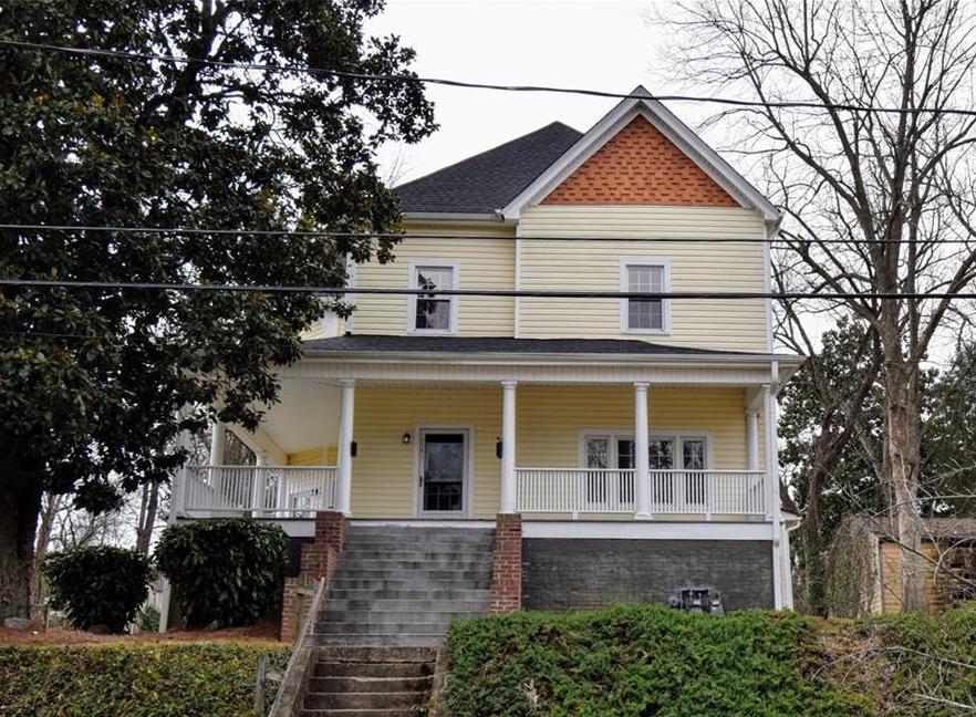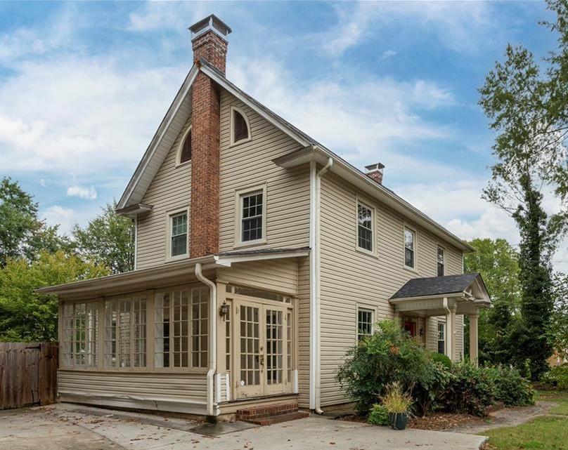 - “It is a fine example of traditional, vernacular houses built in the Piedmont during the early 20th century,” the county’s description of the house says. “It is a two-story frame dwelling with an L-shaped configuration and Colonial Revival detailing. The house features a brick foundation and weatherboard siding.
