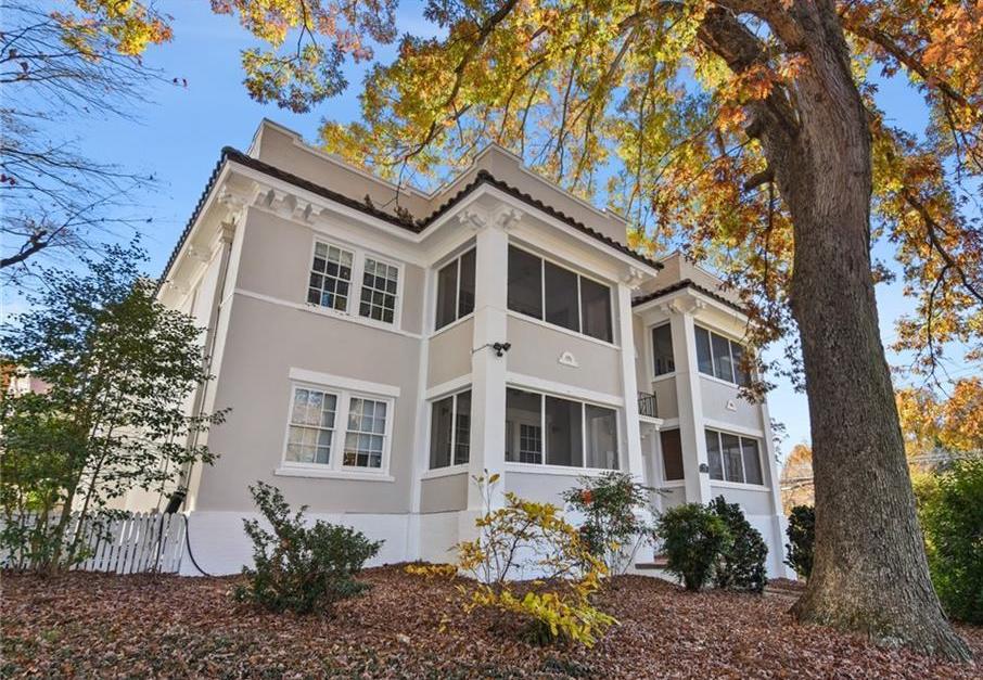 - “This Mediterranean style apartment building is one of the most handsome of the early apartments in the West End. The two-story building is characterized by white stucco walls interrupted by paired windows, a green tile pent eave at the roofline with a shaped parapet above and groups of scrolled brackets decorating the soffit, and a round-arched balconied window above the central entrance.