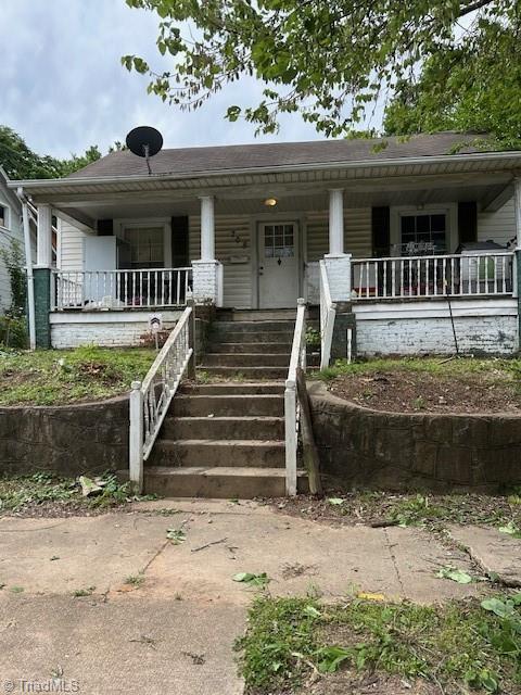 - District NR nomination: “Bungalow. One story; side gable; vinyl siding; six-over-six replacement windows; replacement posts on brick piers; shed-roof porch; knee braces. Appears on 1917 Sanborn Map.”
