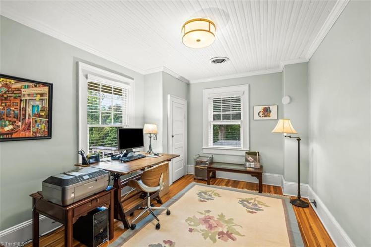 The property was owned from 1916 to 1947 by William Sylvester Jobe (1868-1936) and Mary Elizabeth Hinshaw Jobe (1869-1947). William had a varied career — co-founder of a milling company, director of the Greensboro Motor Car Company and then 20 years in the machinery business. Mary’s estate sold the house in 1947.