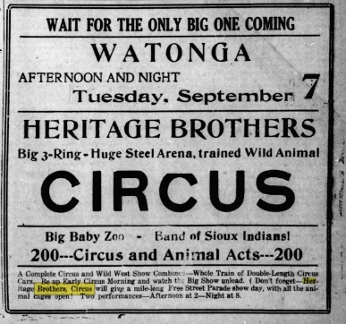 The Heritage brothers were born in Burlington, two of 12 children of James Henry Heritage Sr. and Martha E. Marshall Heritage. Arthur Heritage (1878-1966) had worked for the Ringling Brothers and Barnum and Bailey Circus and the Clyde Beatty Circus. Albert Heritage (1880-1957) ultimately spent 35 years in the circus industry, mostly as an advance man.