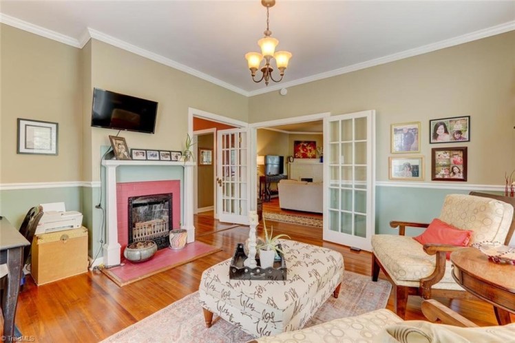 - “In 1924 Tomlinson moved to his new large Tudor Revival house on Hillcrest Drive in Emerywood. His old house was moved off N. Main Street, which was changing from the main residential avenue to a commercial boulevard, to its current location at 213 Woodrow Avenue in Sherrod Park” by 1931, according the the city directory.